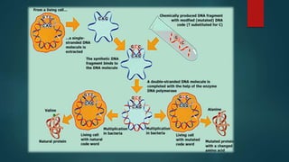 Site-directed mutagenesis is a technique used to introduce specific changes to the DNA sequence of a gene by altering the nucleotide sequence. It allows researchers to study the impact of mutations by changing individual bases, deleting bases, or inserting new bases. There are different methods of site-directed mutagenesis including oligonucleotide-based methods and PCR-based methods. Site-directed mutagenesis has applications in research, production of desired proteins, and development of engineered proteins for commercial uses like detergents.