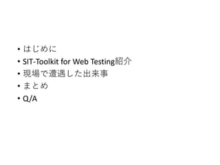 for Web Testing紹介 • 現場で遭遇した出来事 • まとめ • Q/A