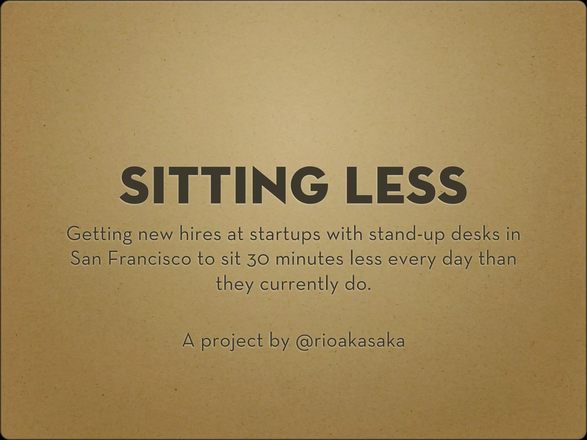 The document discusses a project aimed at reducing sedentary behavior in new hires at startups in San Francisco by promoting the use of stand-up desks to decrease sitting time by 30 minutes daily. It emphasizes that changing the work environment is crucial for encouraging this behavior, with peer support being more effective than reminders or apps. The findings suggest that structuring the environment can lead to better long-term behavior changes.
