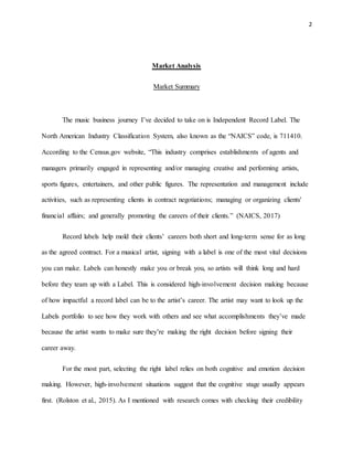 Vital Records is positioning itself as an independent record label on the East Coast that provides marketing strategies and career guidance to young, up-and-coming artists. The target market is musicians between 18-30 years old living in cities like New York and LA. Competition includes established labels like Manic Kat Records and talent agencies like Red Light Management. Vital Records aims to help artists gain exposure and attention while allowing them creative freedom, which some see as weaknesses of larger competitors.