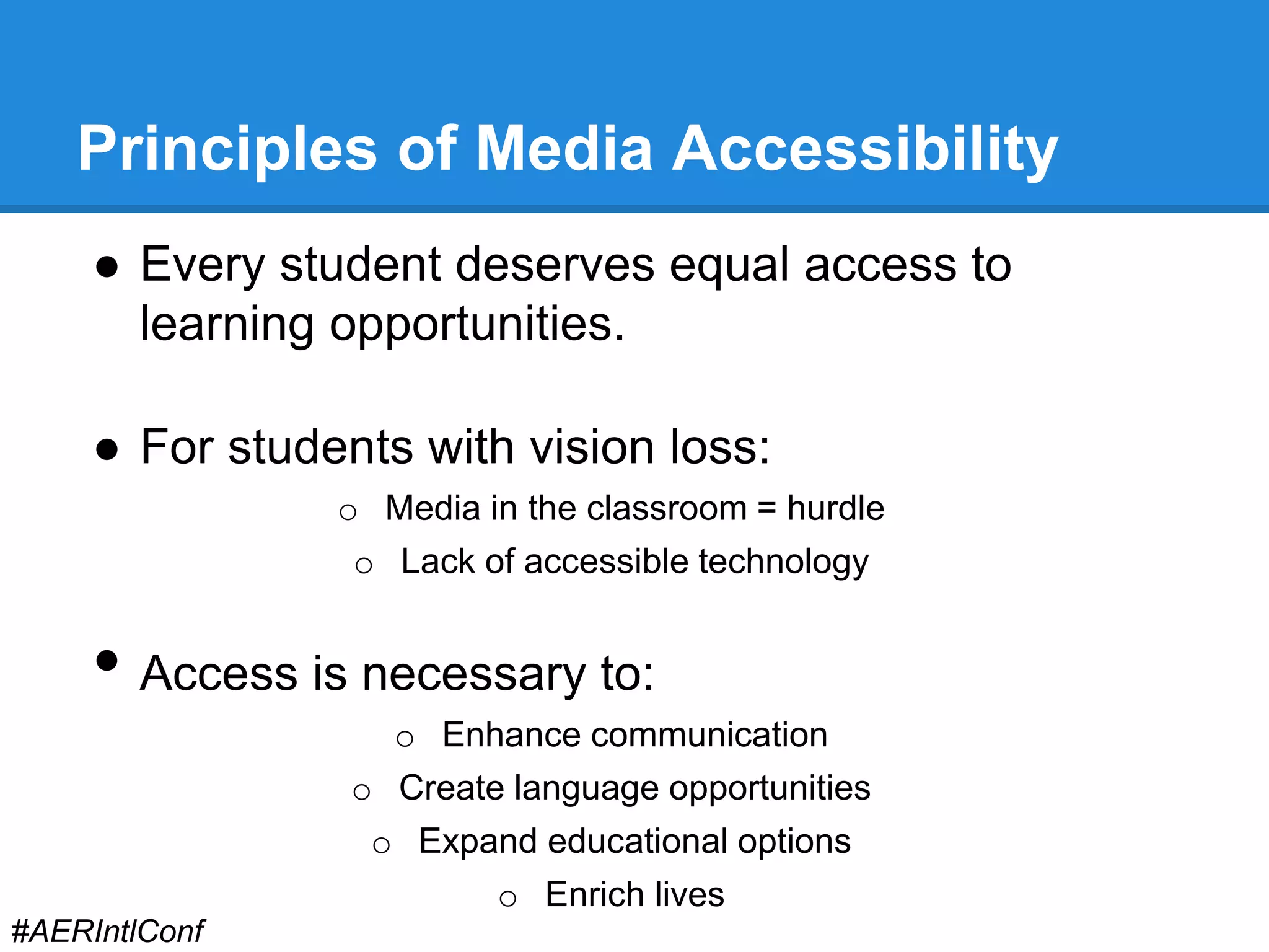 The document discusses the importance of media accessibility in education, emphasizing the need for equal learning opportunities for students with disabilities, particularly those who are blind or hearing impaired. It highlights the role of the Described and Captioned Media Program (DCMP) in providing resources like described and captioned educational media and lesson guides. Additional tools and guidelines for creating accessible multimedia are also shared to promote inclusion and effective communication in educational settings.