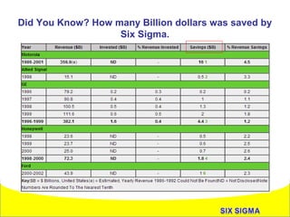 This document provides an overview of Six Sigma and the DMAIC methodology. It discusses: