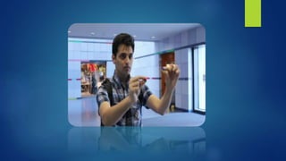 The document describes Sixth Sense technology, a wearable gestural interface developed by Pranav Mistry that augments the physical world with digital information. It consists of a camera, projector and mirror worn around the neck connected to a smartphone. The camera tracks hand gestures marked with colored markers to interact with projected interfaces on surfaces. Applications include making calls, maps, photos. Benefits are an intuitive interface and turning any surface into a display. Future enhancements could remove markers and incorporate the technology into mobile devices and applications like education and gaming.