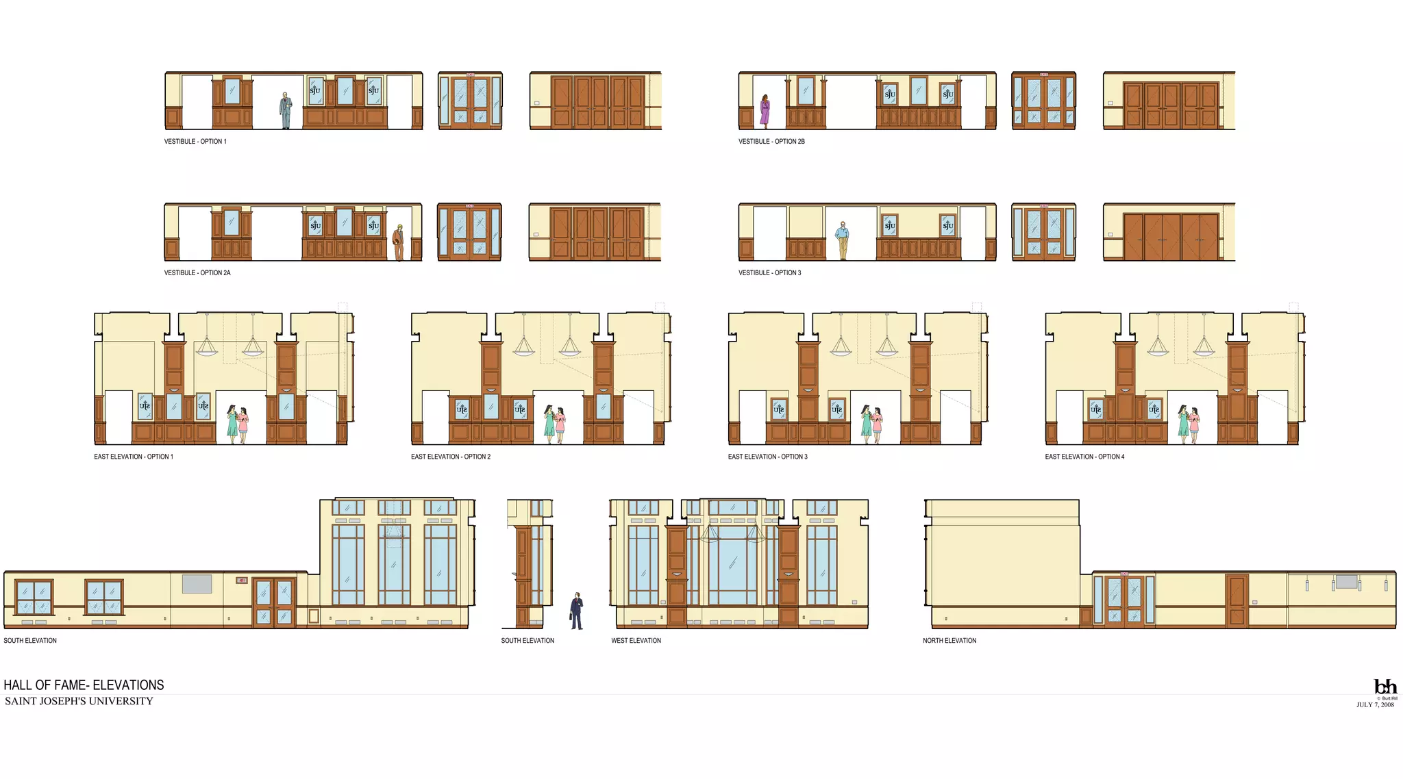 St. Joseph\'s University, Athletic Center, Hall of Fame, Rendered Millwork Options (Work Completed)