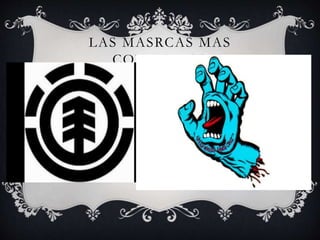 This document discusses various skateboarding brands and equipment. It lists the most well-known skateboard brands, including brands for shoes, boards, backpacks, and other accessories. Some of the top board brands mentioned are Element, Tool, Plan B, and brands for shoes include DC, Vans, Etnies, Faller, and Osiris.