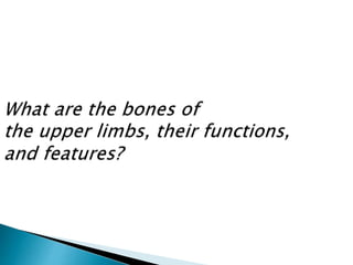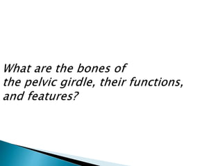 The document provides an overview of the skeletal system, its composition, functions, and classifications of bones. It details the anatomy of long bones, types of bone cells, processes of bone growth, and the structure of the spine and pelvis. Additionally, the document explains joint classifications, types of fractures, and conditions related to joint health.