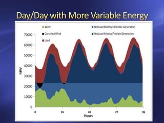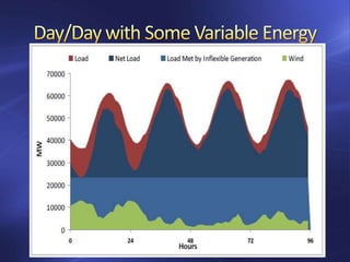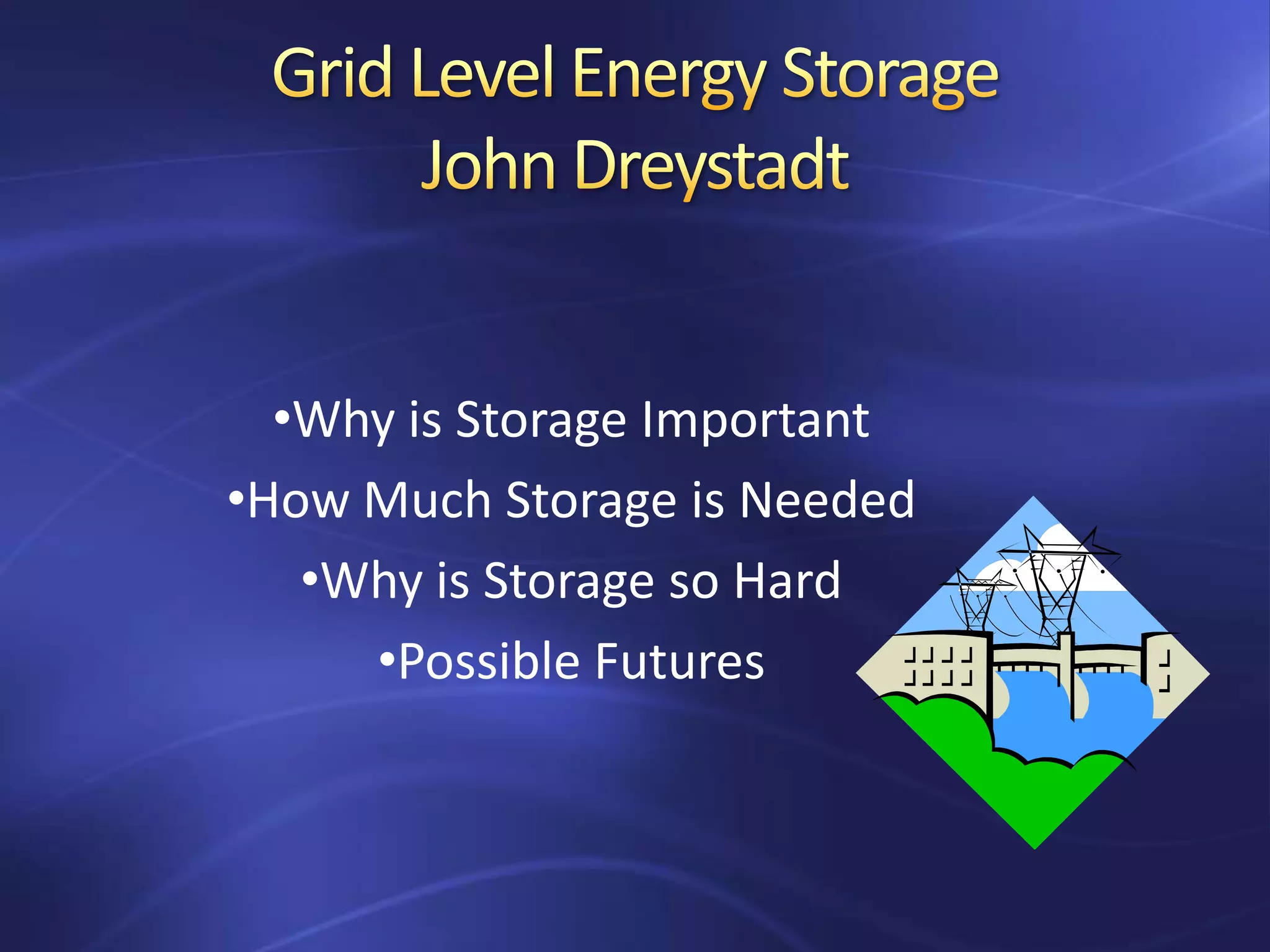 The document discusses storage technologies for renewable energy and the electrical grid. It analyzes different storage options like pumped hydro, compressed air energy storage (CAES), thermal storage, flywheels, and potential hydro. It finds that pumped hydro provides good energy density and lifespan but has scaling issues. CAES and thermal storage may be suitable for day-to-week scale storage but have technical challenges. Meeting future storage needs will require further cost reductions across technologies.