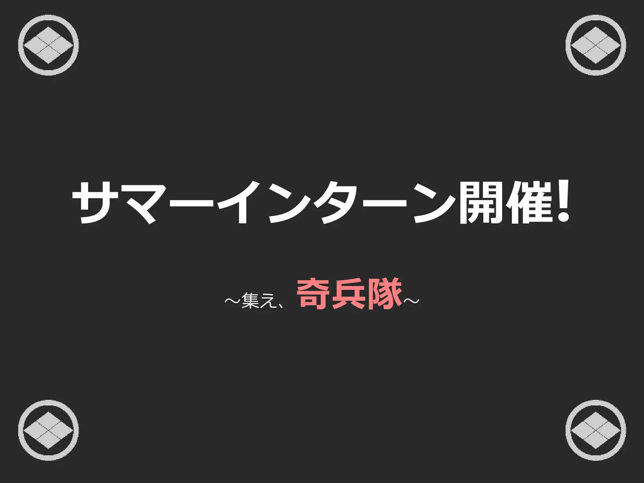 前回、多くの方々にシェアして頂いた「明治維新の立役者、坂本龍馬がパワポで薩長同盟の提案書を持って来たら」に引き続き、今回は高杉晋作の奇兵隊の募集要項を作ってみました!!サマーインターン風のスライド、面白かったと思って頂けましたら、シェア宜しくお願い致します!! 資料作成のご依頼は http://sket.asia/ まで!!