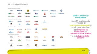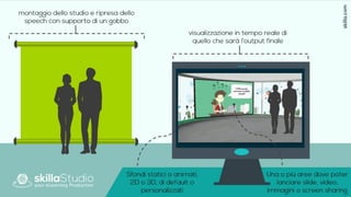 Skillastudio è una soluzione e-learning sviluppata da Skilla-Amicucci Formazione per creare contenuti formativi multimediali in tempi brevi e a costi contenuti, particolarmente utile durante la crisi COVID-19 per trasformare la formazione in presenza in modalità a distanza. Il processo di produzione consente una realizzazione rapida e coinvolgente, utilizzando ambienti virtuali e una gamma di supporti multimediali. Un caso di successo è rappresentato dal progetto con Almaviva, che ha implementato moduli formativi per 45.000 persone in tutto il mondo.