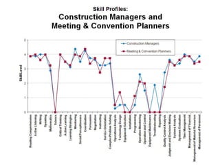 Different genders, same skills People sometimes avoid nontraditional careers because they're thinking about who works in the occupation and not what the job would actually be like. But did you know that some male-dominated careers use the same skills as some female-dominated fields? Skill Profiles are graphs of which skills are most or least required by occupations. You can learn about how similar occupations are to each other by comparing their skill profiles. You may find some surprises.