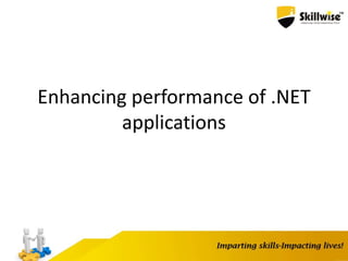 This document discusses various techniques for enhancing the performance of .NET applications, including: