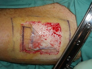 This document discusses the physiology and process of skin grafts. It describes the layers of skin - epidermis and dermis - and their functions. It explains the classification of different types of skin grafts including full thickness and split thickness grafts. The document then outlines the four phases of "take" that a skin graft undergoes as it revascularizes and attaches to the recipient bed. It provides details on the histological and structural changes that occur in both the epidermis and dermis as a graft heals over time. Factors that influence graft survival and potential causes of graft failure are also summarized.