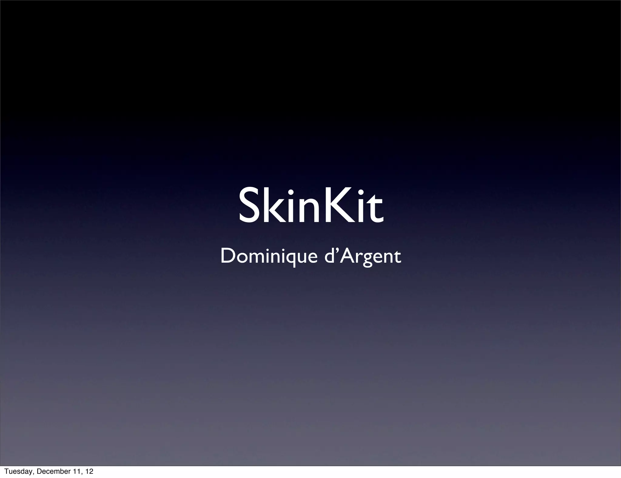 The document provides an overview and instructions for using SkinKit, an iOS framework for customizing the appearance of apps. It discusses installation, usage, and different approaches for skin creation including implementing a data source protocol, subclassing SKSkin or SKDefaultSkin, and creating a skin bundle. Subclassing SKDefaultSkin allows customizing colors and images with default assumptions for simplified skin creation.