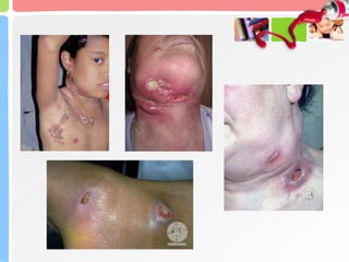 Skrofuloderma adalah infeksi kulit yang disebabkan oleh Mycobacterium tuberculosis atau M. bovis, yang biasanya menyerang kelenjar getah bening dan dapat menyebabkan abses. Penyakit ini sering terjadi di negara berkembang, terutama pada anak-anak yang mengonsumsi susu terkontaminasi, dan ditandai dengan pembesaran kelenjar getah bening serta ulkus yang tidak nyeri. Diagnosis dilakukan melalui anamnesis, pemeriksaan klinis, dan beberapa tes laboratorium, sedangkan pengobatan melibatkan kombinasi obat antituberkulosis dan, jika perlu, intervensi bedah.