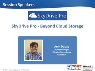 The document provides an overview of Skydrive Pro, Microsoft's cloud storage solution for businesses. It highlights features like collaboration, document sharing, and syncing capabilities across various devices and locations. Skydrive Pro is integrated with Office 2013 and SharePoint, allowing users to manage documents both online and offline.