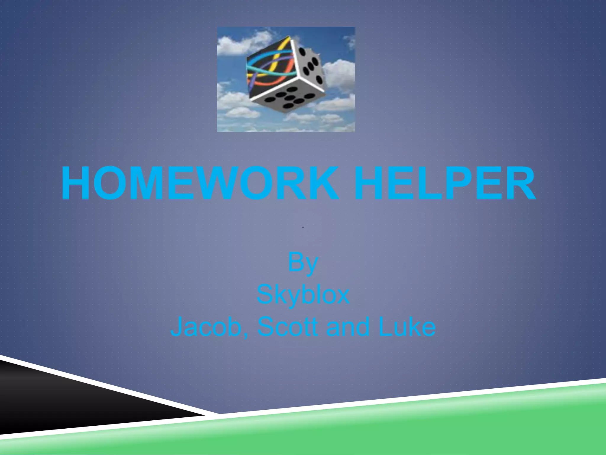 The Homework Helper app aims to help secondary school students remember homework assignments and due dates. It allows students to record homework tasks, set reminders, and share information with other users to get help when stuck. The app's unique features include recording video or photos of tasks, status updates, and online forums for sharing knowledge. It is intended for ages 12-23 and uses a free model with targeted ads and a paid community feature to form online homework help networks.