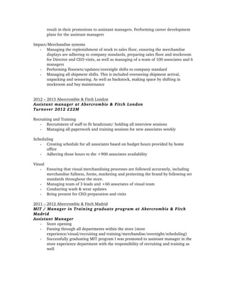 Skye Mina has over 7 years of experience in retail management and merchandising for brands like Triyoga, Hollister, and Abercrombie & Fitch. She graduated from Istituto Europeo di Design with a degree in fashion design and a special mention of honor. Her experience includes visual merchandising, inventory management, hiring and training staff, and ensuring compliance with brand standards. She is seeking a creative role where she can apply her management skills and motivation in a fast-paced environment.
