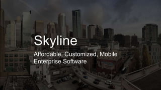Skyline offers affordable, customizable mobile enterprise software solutions for SMEs, addressing issues such as high costs and outdated systems. The platform enables businesses to build their own software by defining workflows and utilizing various tools. It operates on a freemium model with competitive advantages in cost, functionality, and ease of use, while aiming to expand its presence in the North American market.