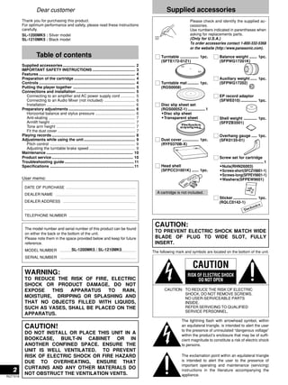 This document provides operating instructions for a turntable model. It includes 3 parts: