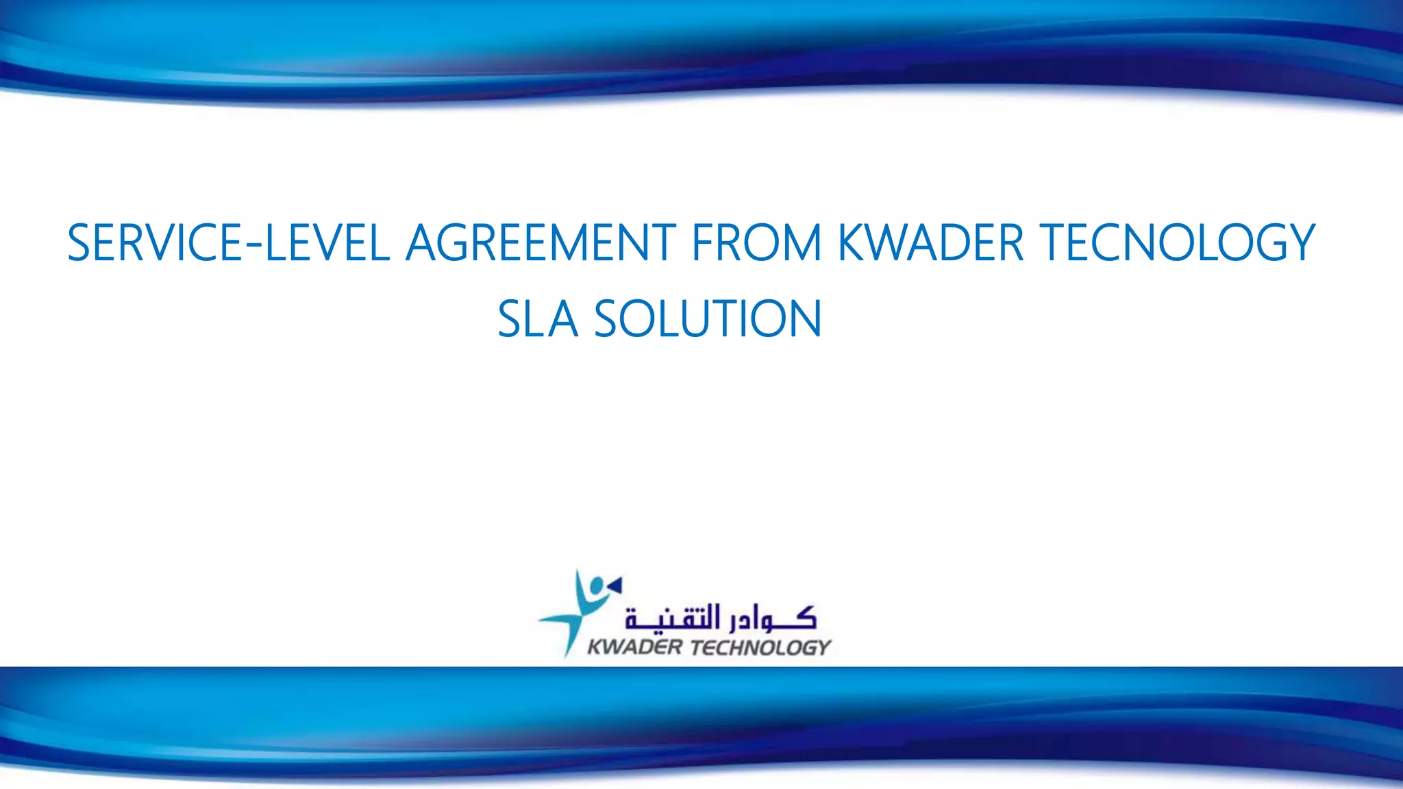 This document outlines Kwader Technology's service level agreement (SLA) solutions. It defines what an SLA is, the key elements that should be included in an SLA like objectives, service descriptions, performance standards, compensation for failures to meet standards, and provisions for contract management. The document explains how SLAs benefit both customers and service providers by establishing clear expectations around service delivery. It then provides information about Kwader's experience providing SLA services in Saudi Arabia and contact details for inquiries.
