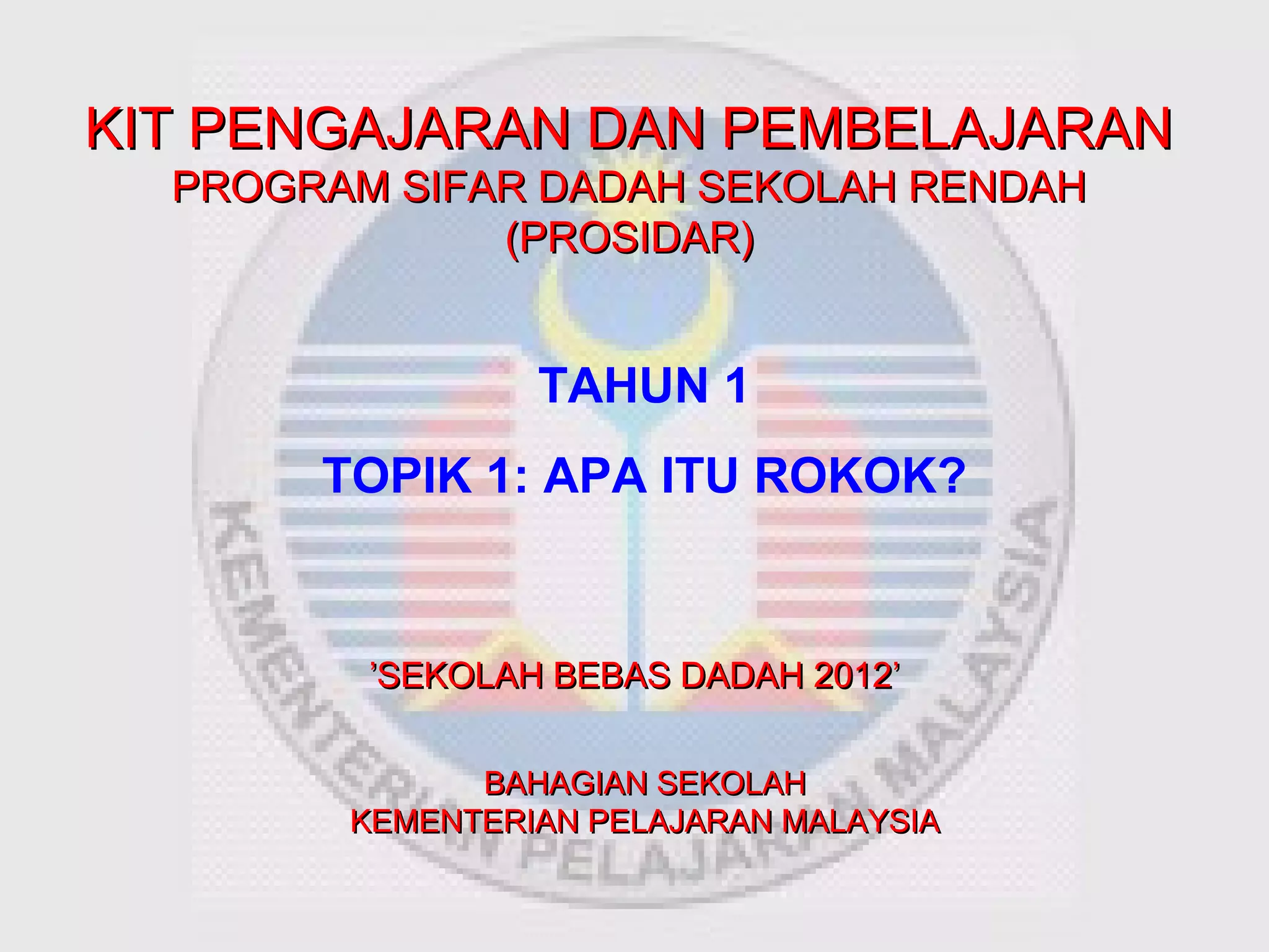 Dokumen ini merupakan kit pengajaran dan pembelajaran tentang program sifar dadah untuk sekolah rendah dengan fokus pada topik rokok. Ia mengandungi maklumat mengenai bahan kimia dalam rokok dan menggalakkan nilai kesihatan melalui puisi. Tujuan utama adalah untuk mendidik kanak-kanak tentang bahaya merokok dan kepentingan menjaga kesihatan.