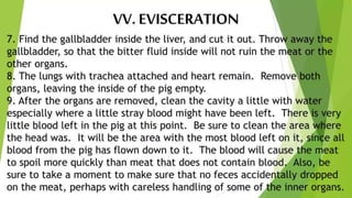 The document outlines the processes involved in the transformation of livestock into meat, emphasizing the importance of proper handling to prevent unnecessary suffering and loss of production. It discusses criteria for selecting animals for slaughter, including age, weight, and health, and highlights best practices for handling livestock before and during transport to the slaughterhouse. Key concerns addressed include minimizing pre-slaughter stress and maintaining animal welfare throughout the transportation and slaughter processes.