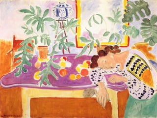 The document discusses sleep and artworks depicting sleep through quotes and lists of artworks with sleep as their subject. It provides quotes on the paradox of sleep and how problems are often solved after sleep. A selection of artworks are listed from artists such as Van Gogh, Rembrandt, Renoir, Klimt, Dali, Picasso, Matisse and others showing sleeping figures, gypsies, peasants, models and more.