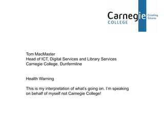 2) Budget cuts of 7-23% are expected over the next few years for colleges. Capital funding is also being cut significantly.