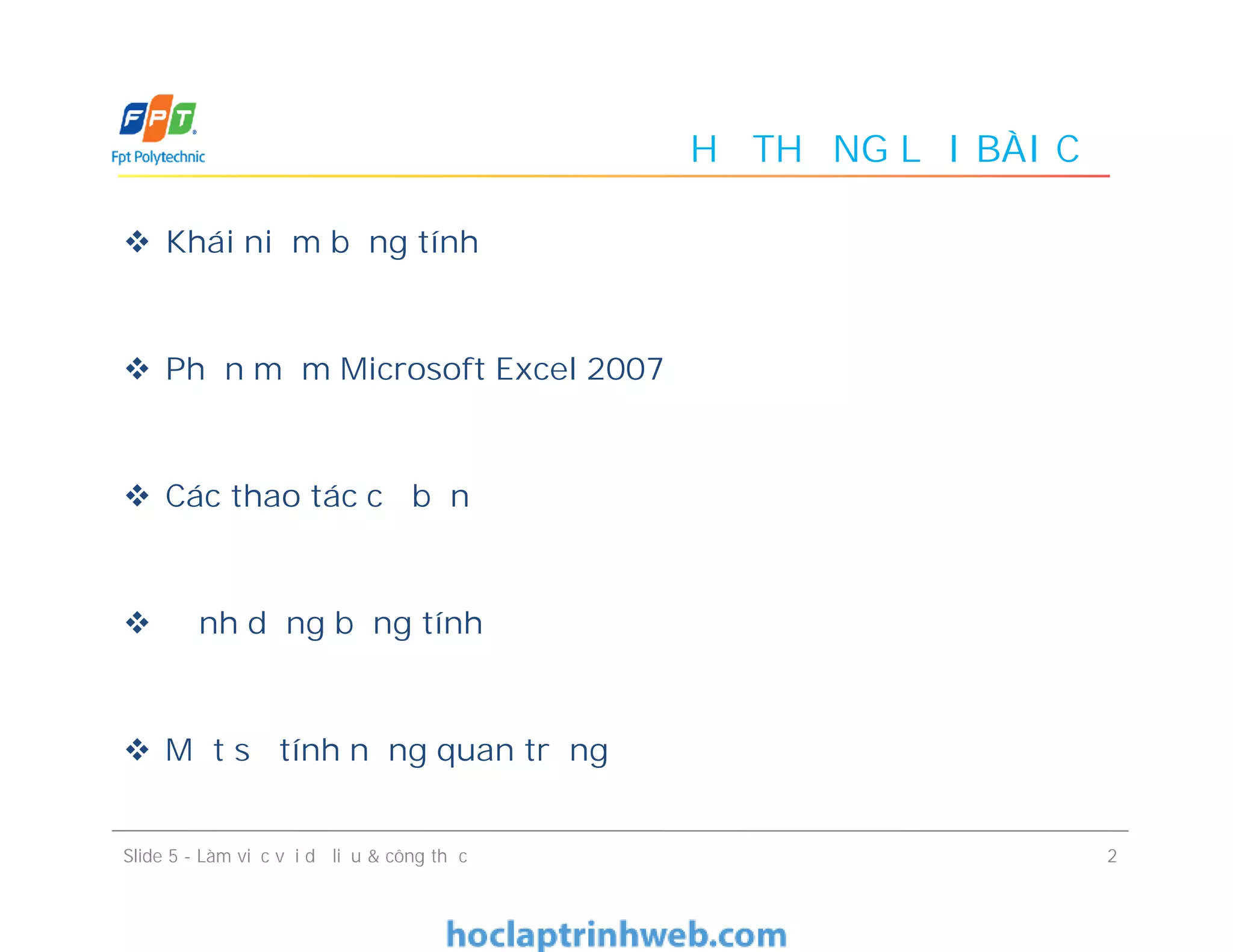Tài liệu hướng dẫn về cách làm việc với dữ liệu và công thức trong Microsoft Excel 2007 bao gồm khái niệm về bảng tính, các kiểu dữ liệu, và cách sử dụng hàm. Nó đề cập đến cách tham chiếu ô, sử dụng công thức, tính năng autofill, cũng như các phương pháp sắp xếp và lọc dữ liệu. Cuối cùng, tài liệu cũng miêu tả cách tạo và thao tác với biểu đồ để trực quan hóa dữ liệu.