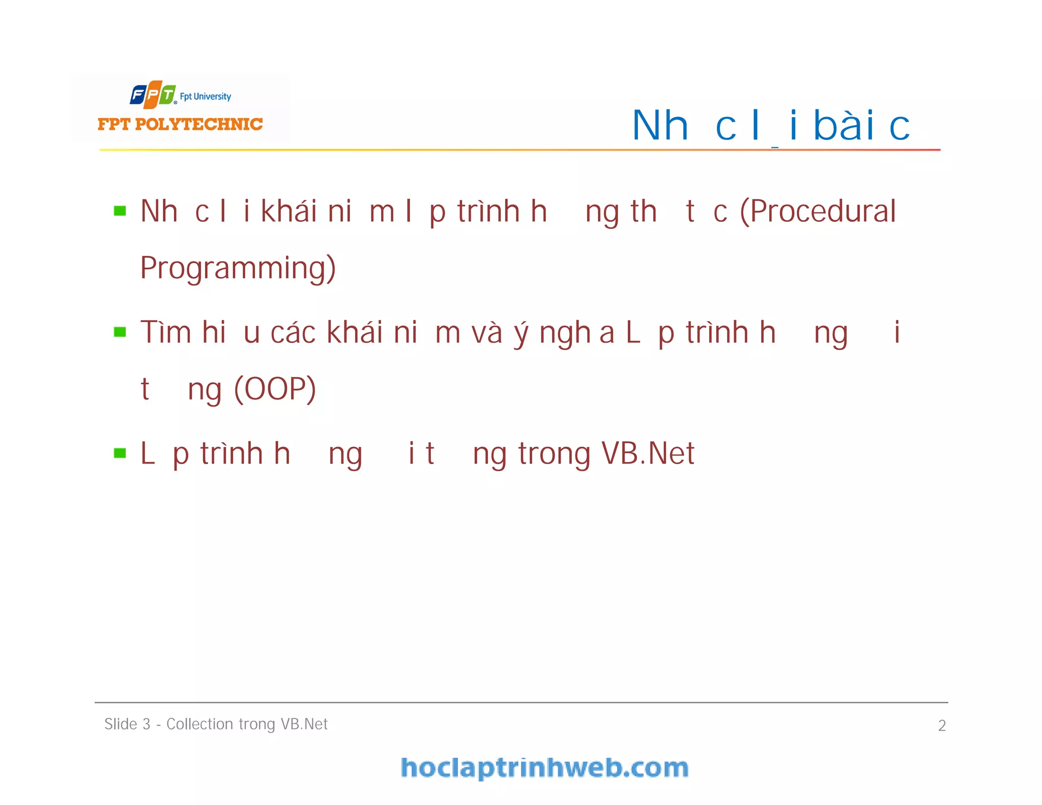Tài liệu trình bày về khái niệm và phân loại collection trong VB.NET, bao gồm tập hợp tuyến tính và phi tuyến tính. Nó giải thích cách tổ chức và truy cập các phần tử trong collections, và cách sử dụng lớp Collection và CollectionBase để cài đặt tập hợp trong VB.NET. Ngoài ra, tài liệu cũng đề cập đến một số lớp collection khác trong namespace System.Collection.