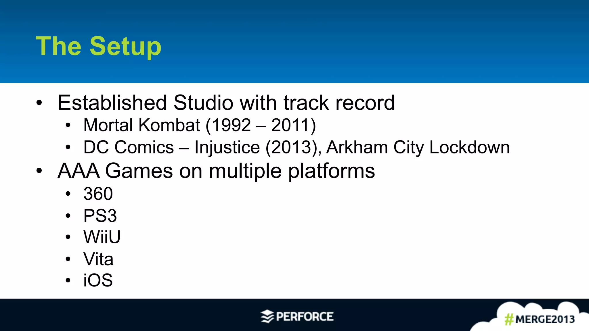 The document outlines the infrastructure and architectural challenges faced by NetherRealm Studios, highlighting their need for reliability, speed, flexibility, and effective management in game development processes. It discusses various strategies and solutions implemented, including the transition to NFS for better performance, the establishment of a VM farm, and emphasizing the importance of redundancy and management tools. Ultimately, it concludes that while Perforce can scale to meet the demands of data-intensive development, ongoing investments in engineering and infrastructure are essential.