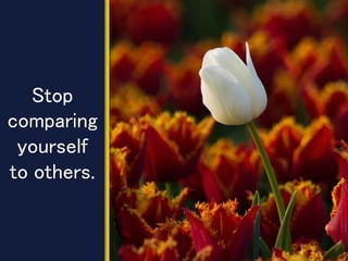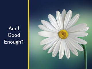 This short document discusses feeling inadequate when comparing oneself to others and encourages the reader to instead focus on what God thinks of them, that the Lord wants to help and forgive those who repent from straying, and to pause and reflect on His grace.