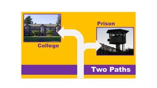 The document discusses how some children are primed for college while others are primed for prison based on their demographics and environment. It notes the US currently has the highest incarceration rate in the world, disproportionately impacting poor, Latino and African American communities. It suggests solutions like criminal justice system support, sentence reform, reducing racial disparity, and increasing youth leadership opportunities.