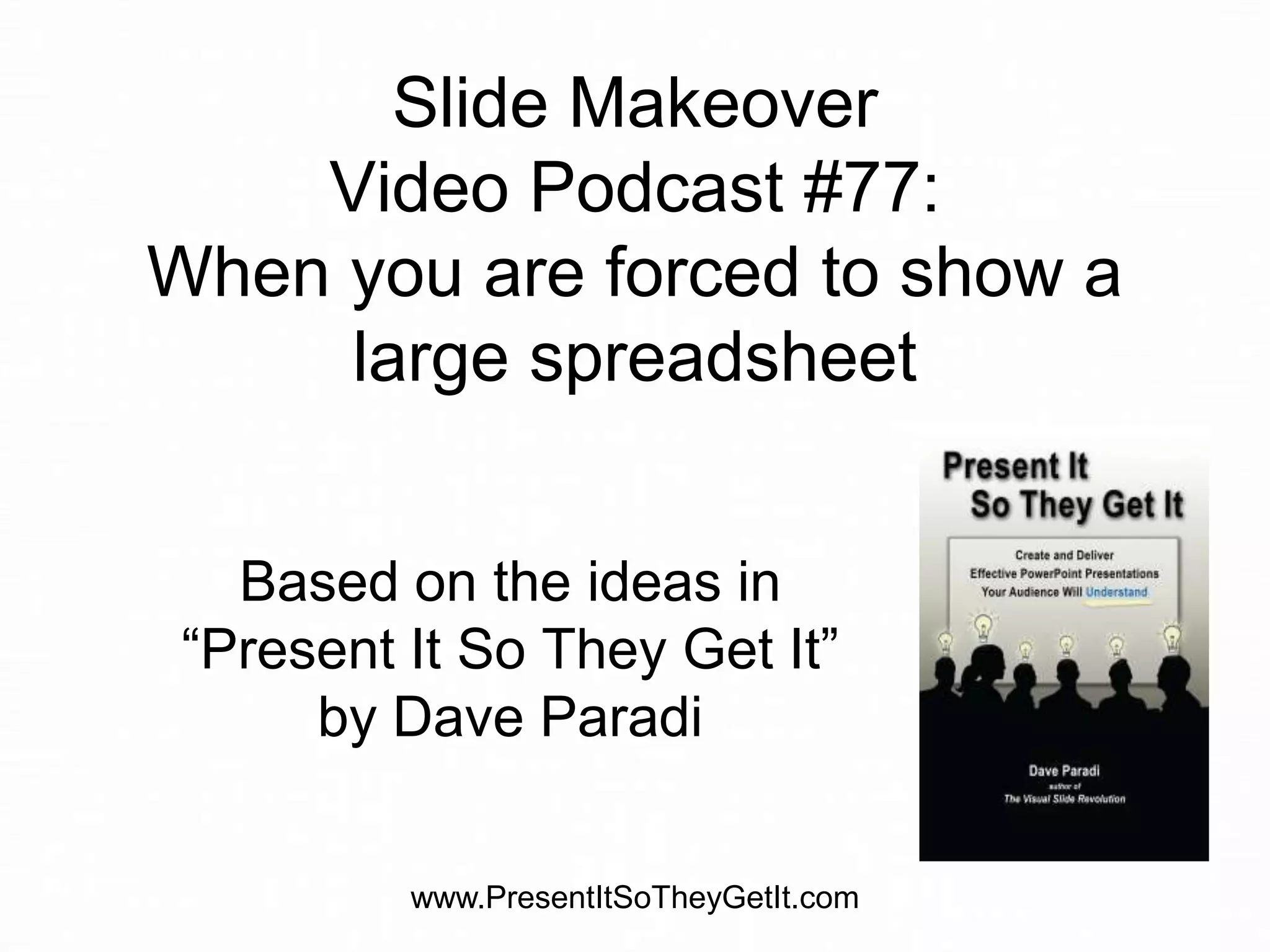 The podcast episode discusses the common dissatisfaction audiences have when presenters use large spreadsheets in slides, emphasizing the importance of presentation clarity. It offers practical tips to make spreadsheets more meaningful, including summarizing key messages with headlines and using callouts to highlight important numbers. Despite recommendations for improvement, the speaker acknowledges the challenges of workplace mandates that may prioritize adherence to existing formats over optimal presentation design.