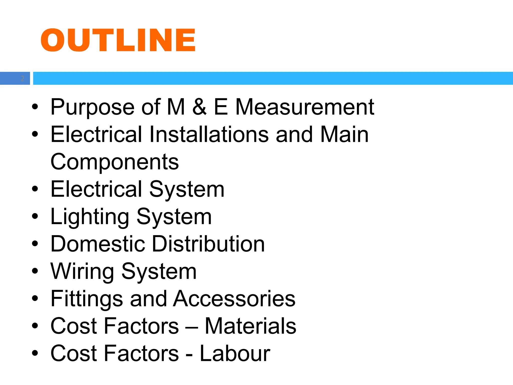 The document outlines principles of estimating for electrical works, focusing on installation types, system components, and safety measures. It emphasizes the importance of accurate measurement for cost control, detailing various factors affecting material and labor costs. Additionally, it provides guidelines for lighting system design and considerations for electrical installations.