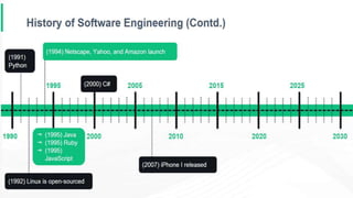 The document discusses traditional software development, focusing on its history, evolution, and methods including the waterfall model. It outlines the phases of software development from feasibility study to system deployment and maintenance while highlighting the advantages and drawbacks of the waterfall model. Additionally, it addresses conflicts between development and operations teams, emphasizing the need for collaboration and effective communication to mitigate issues.