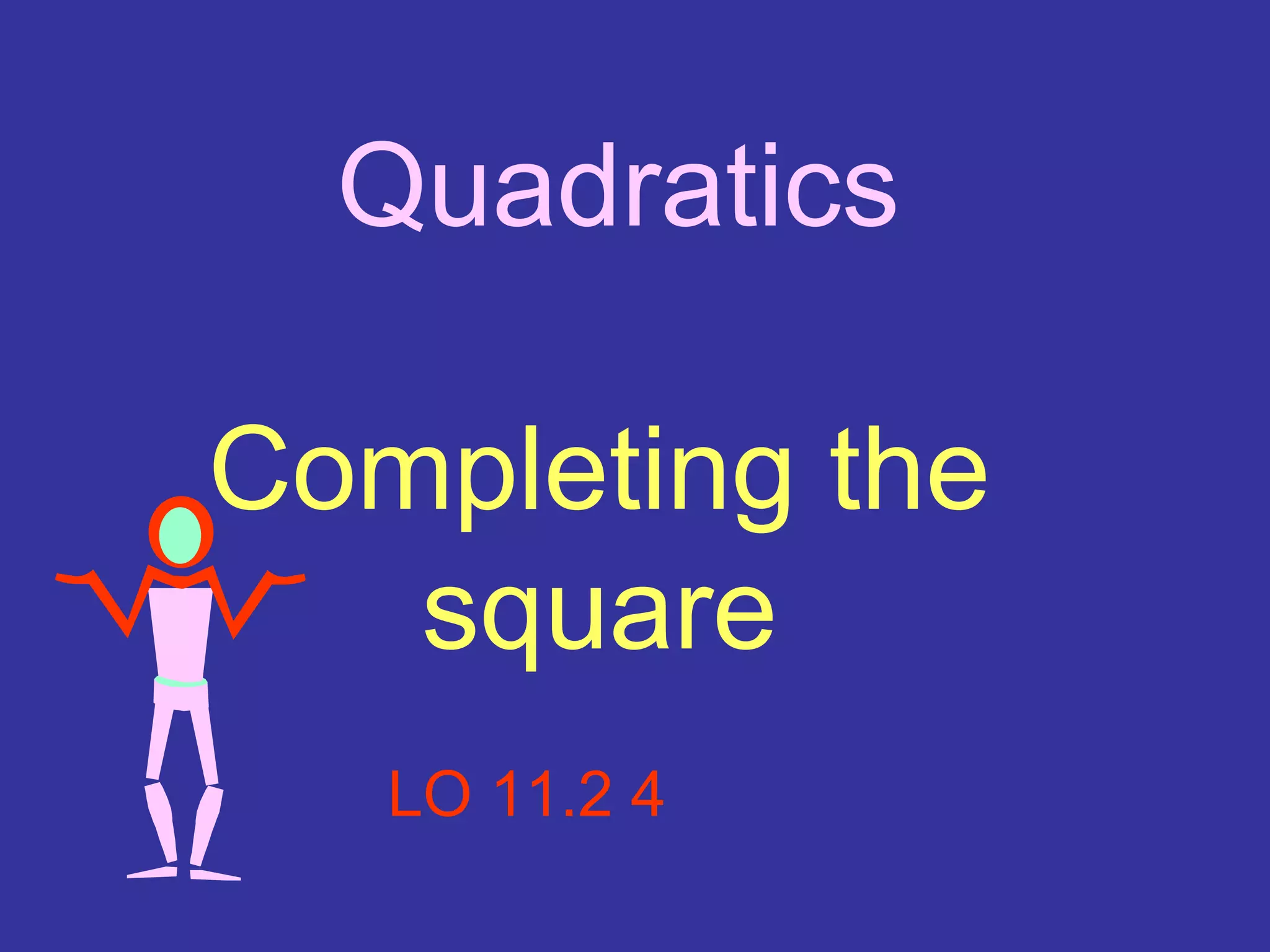 1) The document discusses the process of completing the square to solve quadratic equations. It provides examples of factorizing quadratics and using completing the square to solve equations like x^2 - 8x - 7 = 0.