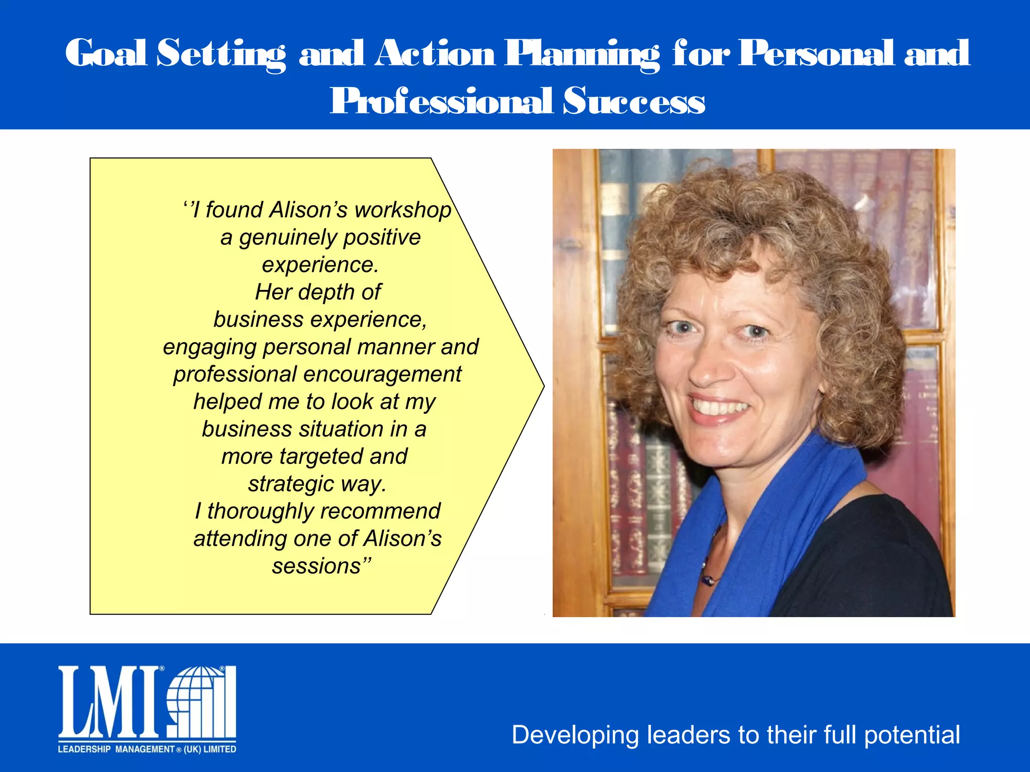 This document contains testimonials and quotes about a workshop on goal setting and action planning led by Alison. The testimonials praise Alison's experience, engaging manner, and ability to help attendees strategize in a targeted way. They note the workshop was well-paced and provided good tools to take away. Alison is described as an excellent facilitator who translates theory into practical industry application and gives a clear, consistent message. Her approach to goal setting is recommended.