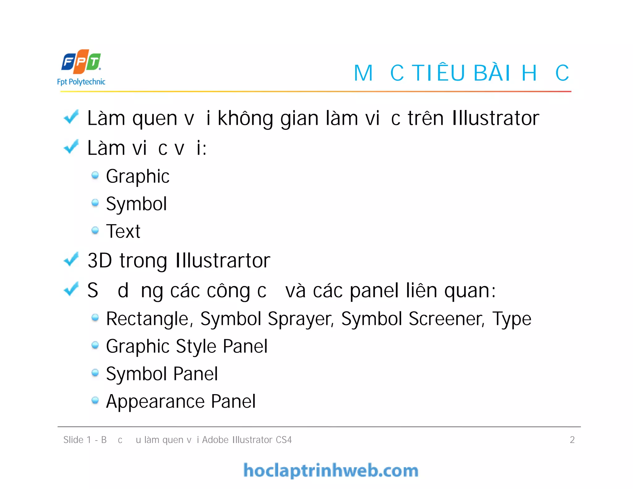 Tài liệu hướng dẫn làm quen với Adobe Illustrator CS4, bao gồm không gian làm việc, các công cụ và panel liên quan như rectangle, symbol sprayer, và graphic style. Nó cũng giới thiệu cách tạo và chỉnh sửa graphic, symbol, và hình ảnh 3D trong phần mềm. Cuối cùng, người dùng có thể tùy biến không gian làm việc để tiện lợi hơn khi thiết kế.