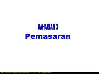 Dokumen tersebut membahas tentang pemasaran, dimulai dengan definisi pemasaran sebagai proses yang ditujukan untuk memuaskan kebutuhan pelanggan dan meningkatkan penjualan perusahaan. Kemudian membahas dua pendekatan pemasaran yaitu berorientasi produk dan berorientasi pelanggan. Terakhir membahas unsur-unsur pemasaran meliputi produk, harga, saluran distribusi, dan promosi.