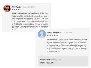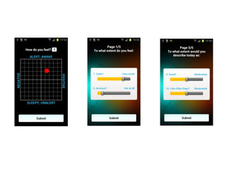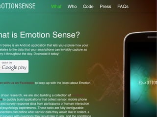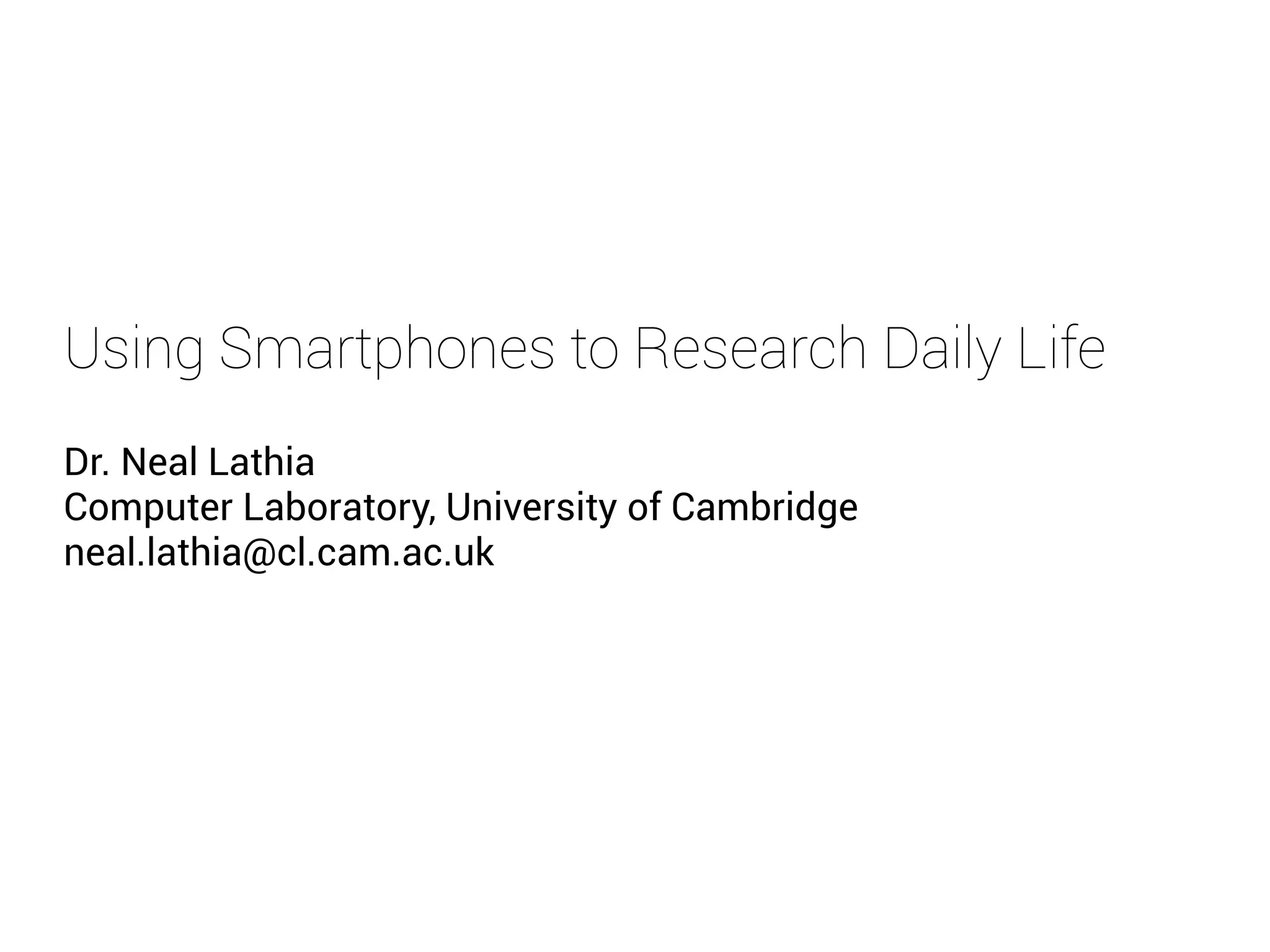This document discusses using smartphones to research daily life through experience sampling methods. It describes the Emotion Sense app, which collects survey responses and sensor data from users to study mood, activities, and context. Key challenges included keeping users engaged in surveys over time. The author also introduces Easy M, a generalized version of Emotion Sense that allows other researchers to easily conduct sensor-enhanced experience sampling studies on their own topics.