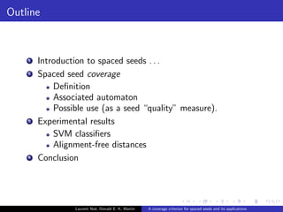 A coverage criterion for spaced seeds and its applications to SVM string-kernels and k-mer distances - presentation