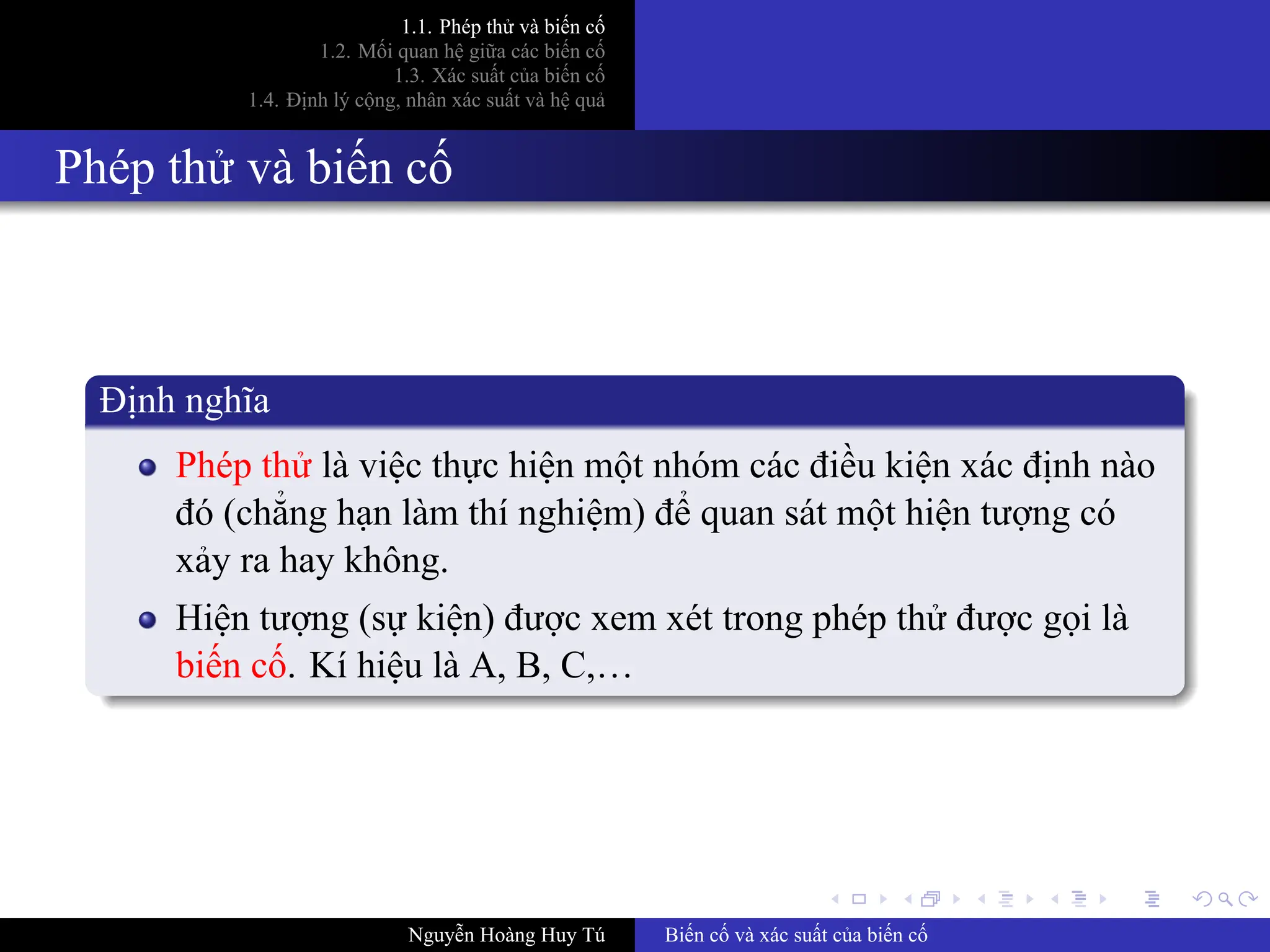 Phép thử là việc thực hiện một nhóm các điều kiện xác định nào