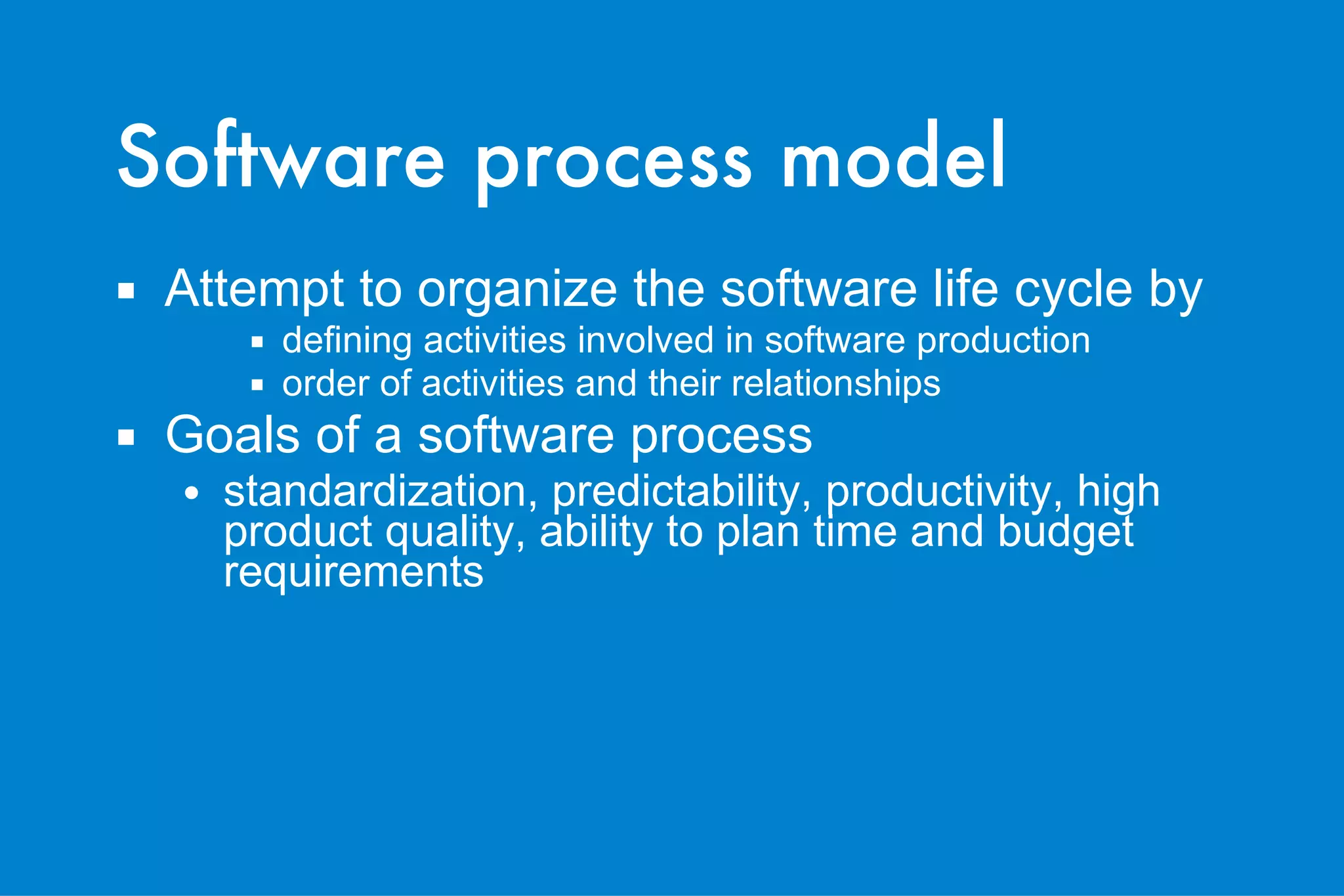 Prescriptive process models attempt to organize the software development life cycle by defining activities, their order, and relationships. Early models like code-and-fix lacked predictability and manageability. Newer models strive for structure and order to achieve coordination, while allowing for changes as more is learned. However, relying solely on prescriptive models may be inappropriate given the need for change in software development.