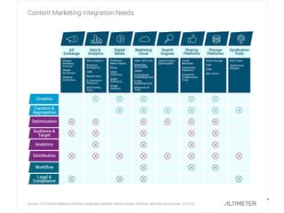 The document discusses a framework for measuring content marketing performance, highlighting challenges in measurement due to market and operational complexities. It features six case studies demonstrating successful brand strategies to assess content impact, with an emphasis on the need for specific metrics tailored to business outcomes. The document outlines essential next steps for crafting a content measurement strategy centered around effective metrics and organizational capabilities.