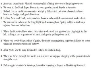 The document outlines the agenda for a class, including topics on capitalization, paragraph development, graphic literacy, and an introduction to a reading. It provides details on paragraph structure, stating the main idea in the topic sentence, supporting statements, and sometimes a concluding sentence. It discusses organizing paragraph details by order of importance, chronology, sequence, or space. An example paragraph on choosing crime scene investigation as a major is provided, contrasted with a non-example. Graphic literacy is defined as reading non-print texts through composition, color, line, size/shape, and background knowledge.