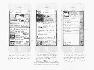 The second prototype is an app called "Job Hunters" designed to help people like Kev build professional networks and find jobs in a gamified, social environment to reduce stress. Screen sketches demonstrate the app's potential interface and features. Both prototypes received positive feedback from testers, with suggestions for improvements.