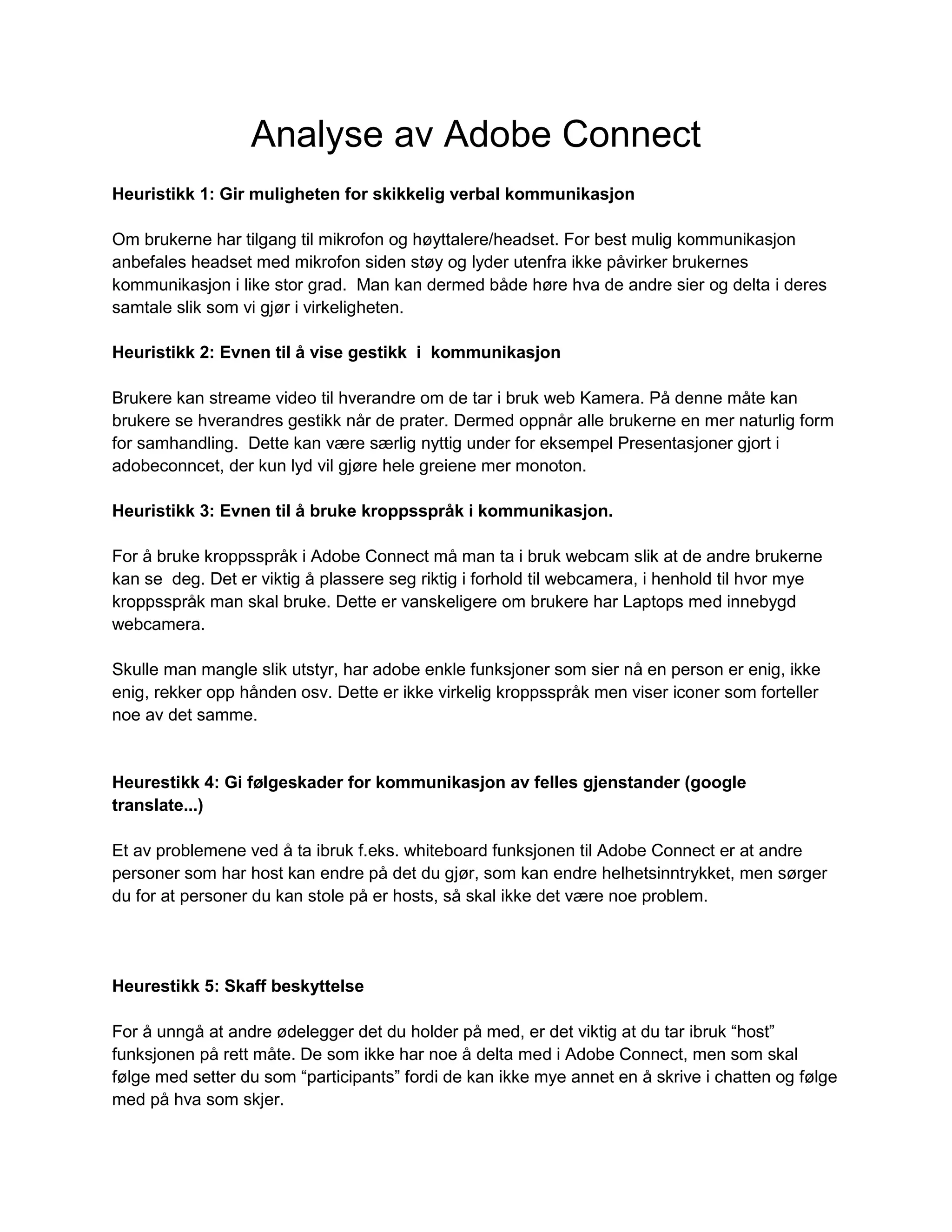 Heuristikk 1: Gir muligheten for skikkelig verbal kommunikasjon
