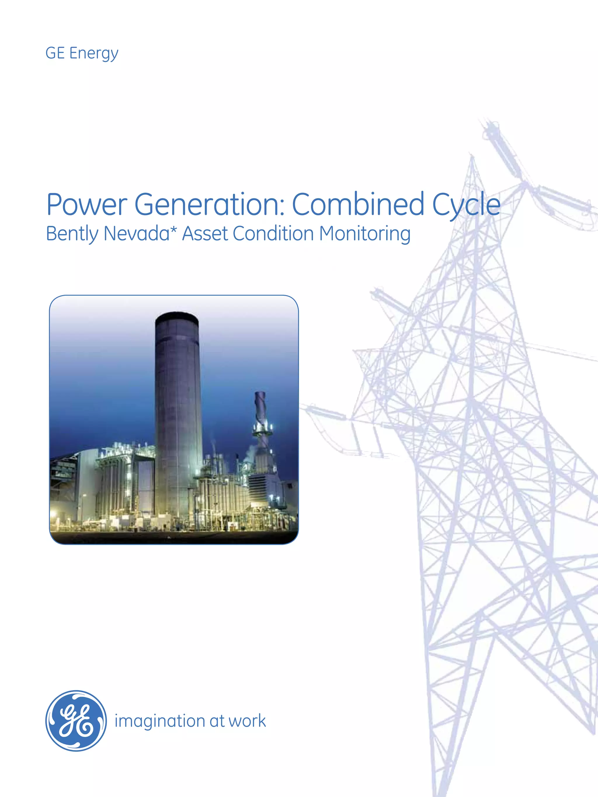This document discusses GE's asset condition monitoring solutions for combined cycle power plants. It begins by providing background on the history and importance of gas turbine power plants. It then describes GE's portfolio of condition monitoring systems that can monitor various assets across a combined cycle plant, such as gas turbines, steam turbines, pumps, fans and more. It discusses how these systems help customers minimize downtime, reduce costs, protect critical equipment, and optimize maintenance through predictive analytics. Customers can see returns through increased availability, reduced maintenance durations and costs, and extended time between outages. The document provides an overview of how GE's solutions can be applied across a combined cycle plant.
