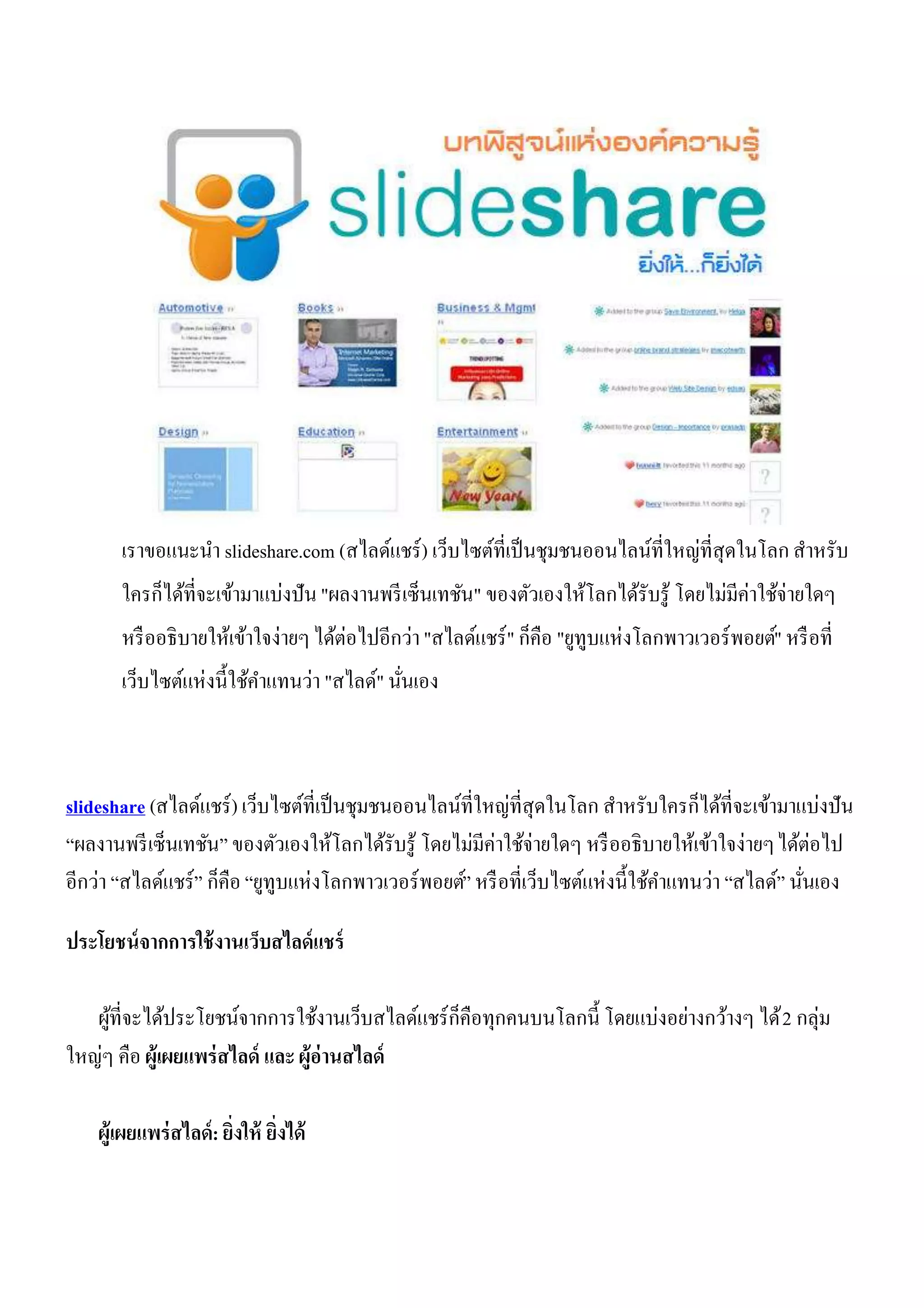 เราขอแนะนา slideshare.com (สไลด์แชร์
